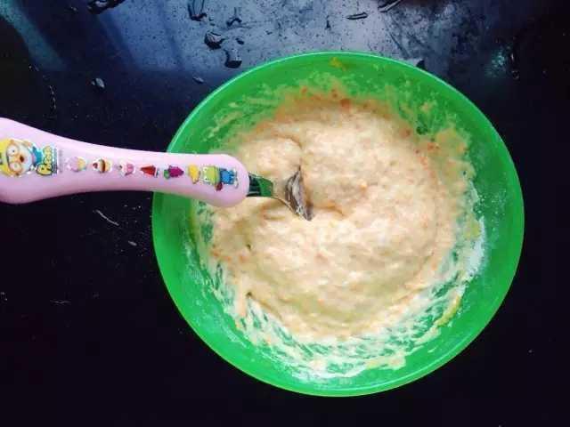 2、喜欢味道重一点可以多放些蔬果泥,同时少放些奶,不要让面糊太稀。