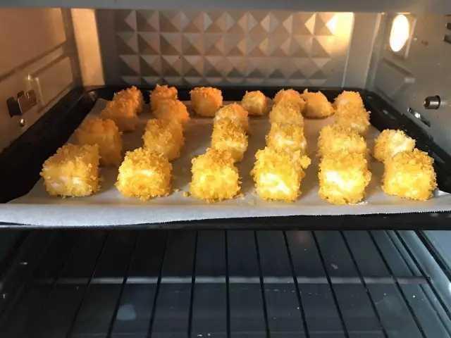 9、奶块裹上面包糠。