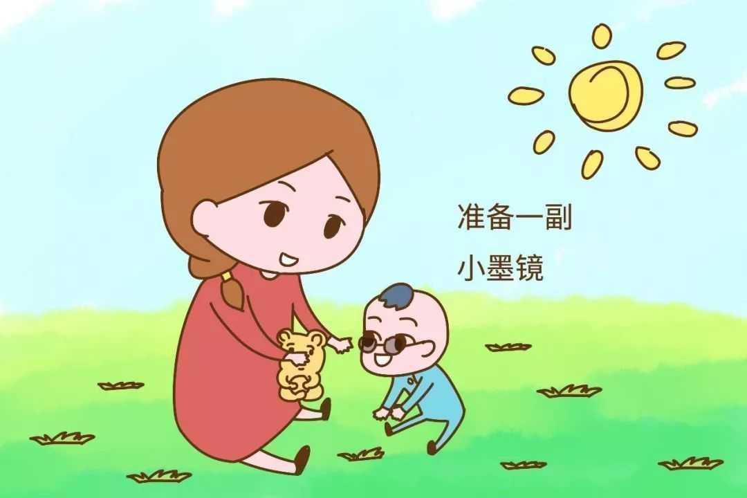 这里提到的“防晒”主要是防紫外线,紫外线对宝宝的皮肤和眼睛都有很大伤害,家长带宝宝晒太阳的时候一定要注意保护好宝宝的头部和眼睛,可以选择给宝宝戴顶太阳帽,或者准备一副小墨镜,总之,不要让太阳光直接照射到宝宝的眼睛。