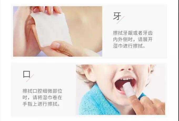 我们可以先使用指套式牙刷,宝宝还没学会“吐”之前,不用让他漱口,不然的话宝宝可能会把牙膏泡沫吞进去。可以将口腔湿巾卷成指套式,涂上米粒大的牙膏,就可以超安心帮助宝宝清理口腔了喔~