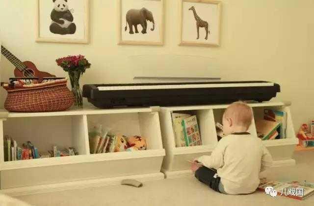 就连墙上的挂画都是宝宝趴着或者扶着站起来就能看到的高度。想像一下挂画非常高,宝宝要不就会因为想看看不到而沮丧,要不就会失去了观察周围的兴趣,所以挂画在他们身高合适的位置就很关键了。
