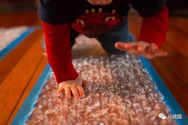 在地上用各种材质铺成一条爬行路径,例如报纸,凉席,被子,或者泡泡纸,再在路径的终点放上一些玩具,这个方法让宝宝有触觉的刺激,发出响声的报纸,凹凸不平的凉席,有爆炸声音的泡泡纸,对世界的认知都是从一点一滴的感官认知开始的。