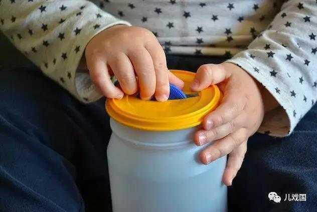 当眼手协调和精细运动得到发展以后,他们就可以尝试转动手腕,利用双手的力量去打开、盖上套娃了。