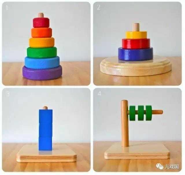 这四种套环有横的,竖的,环状的,别看这些很简单,对于小宝宝横插和竖插的空间感是需要仔细想想才能下手的。