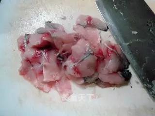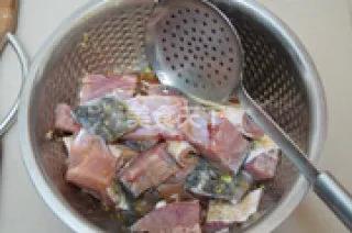 1、将鱼去头去尾。斩成连骨小块,加料酒盐葱姜碎生抽腌上。