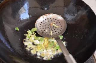 6往锅中滴入几滴料酒、用盐调味、撒上葱花即可出锅。