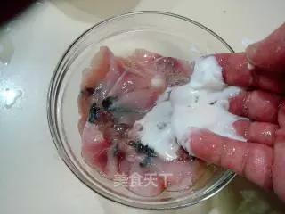 3、最后放入水淀粉。用手反复抓匀上劲。