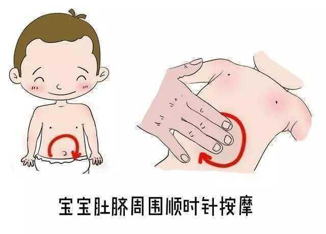 让宝宝仰卧平躺着,握住他的腿,两腿屈膝或帮他像骑自行车一样转动双腿。多给宝宝的腹部进行按摩,可顺时针按摩5分钟。注意动作要轻哦!如果宝宝的脐带没有掉,按摩时要避开肚脐。